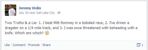 1. "I Once Beat Mitt Romney in a Bobsled Race" - TRUE (link)